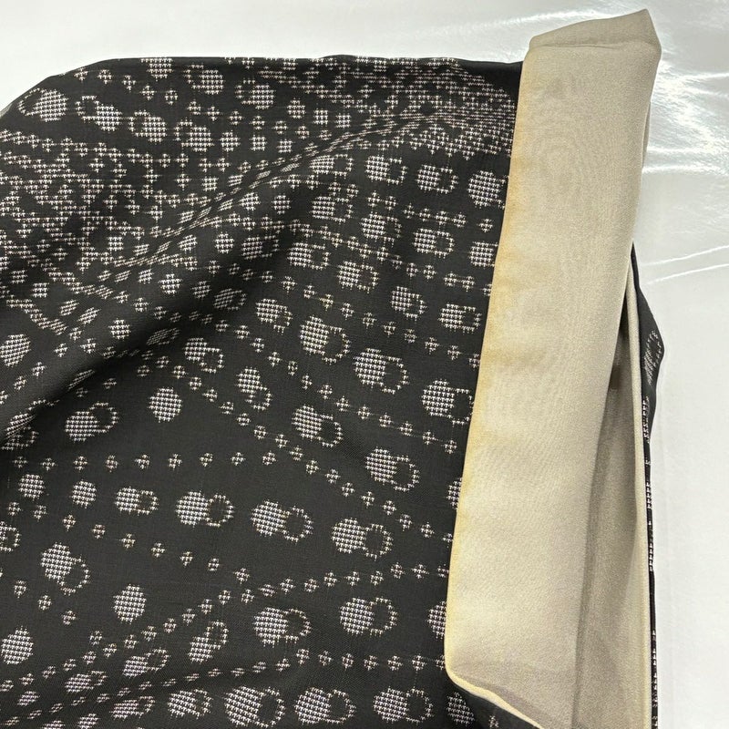 【着物ランク】名品 【素材】正絹 【身丈】約162.5cm 【裄丈】約64cm 【袖丈】約49cm 【袖幅】約33.5cm 【前幅】約23cm 【後幅】約29cm 【サイズ】M 【着物仕立て】袷 【着用時期】10~5月 【状態ランク】ランクB 【着物着用シーン】気軽なパーティー、観劇、食事会、正月、気軽なお茶会、街着