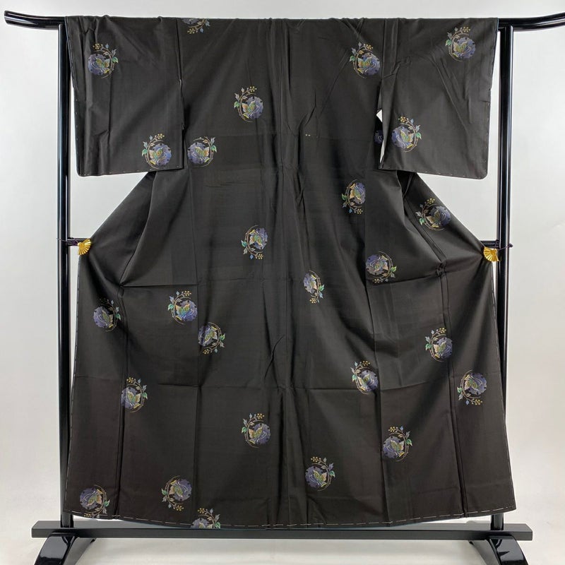 【大島紬】 黒系 墨色 逸品 B 約150cm~約159cm 裄丈63cm-64cm (M)size 袖丈49cm 30000- 五万以下