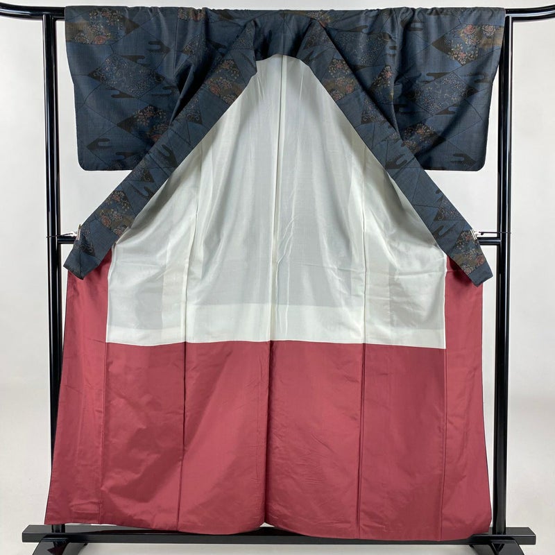 【着物ランク】秀品 【素材】正絹 【身丈】約159.5cm 【裄丈】約63.5cm 【袖丈】約47cm 【袖幅】約33.5cm 【前幅】約23.5cm 【後幅】約29cm 【サイズ】S 【着物仕立て】袷 【着用時期】10~5月 【状態ランク】ランクB 【着物着用シーン】気軽なパーティー、観劇、食事会、正月、気軽なお茶会、街着