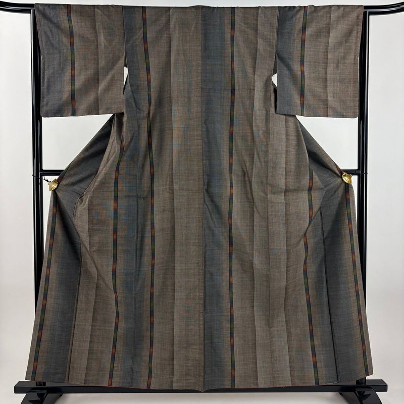 【大島紬】 茶系 茶色 名品 B 約150cm~約159cm 裄丈65cm (M)size 袖丈47cm 4000-7980 二万以下