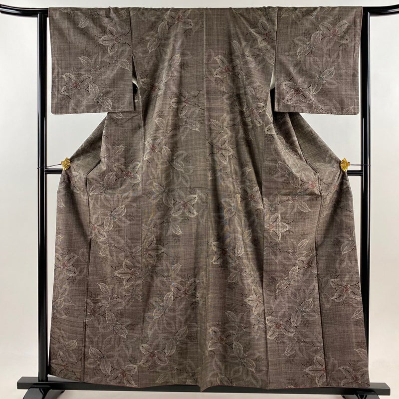【大島紬】 茶系 焦茶色 秀品 B 約150cm~約159cm 裄丈63cm-64cm (M)size 袖丈46cm以下 4000-7980 二万以下