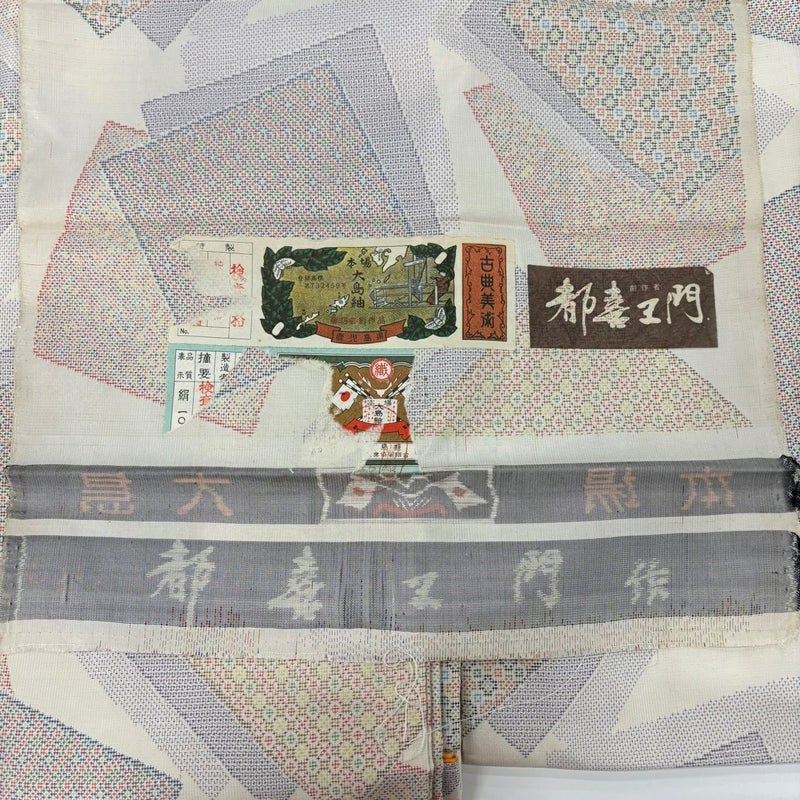 【大島紬】 白系 ベージュ 逸品 A 約160cm~約169cm 裄丈63cm-64cm (S)size 袖丈49cm 30000- 美品 五万以上