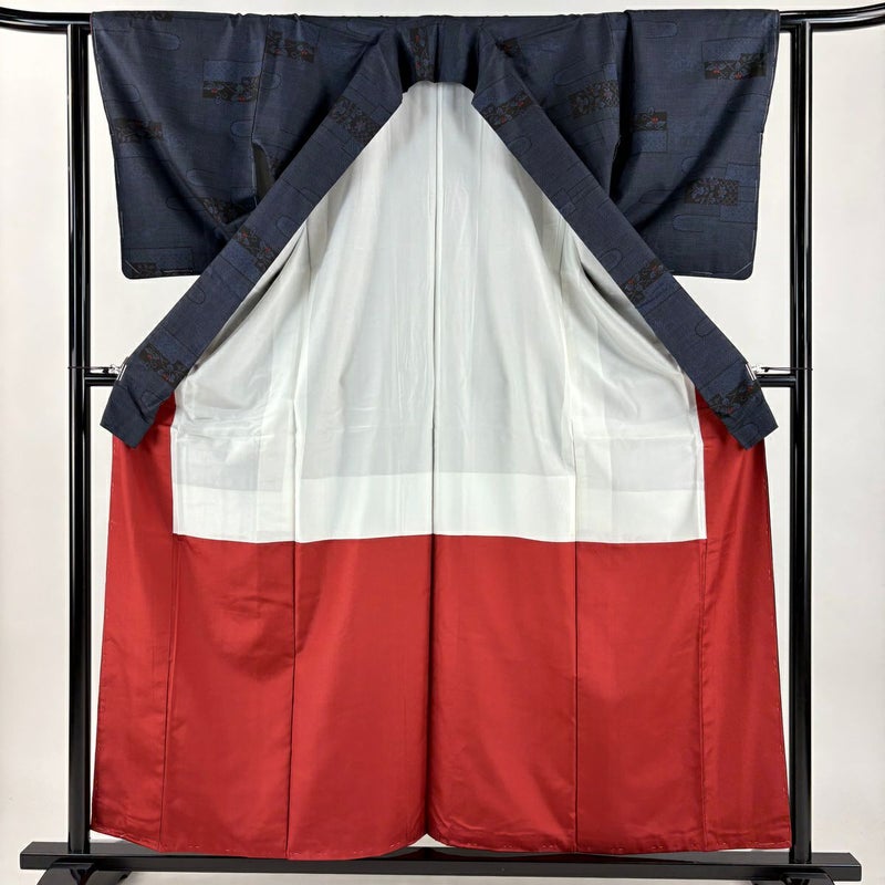 【着物ランク】秀品 【素材】正絹 【身丈】約159cm 【裄丈】約62.5cm 【袖丈】約48.5cm 【袖幅】約32cm 【前幅】約23.5cm 【後幅】約29.5cm 【サイズ】S 【着物仕立て】袷 【着用時期】10~5月 【状態ランク】ランクA 【着物着用シーン】気軽なパーティー、観劇、食事会、正月、気軽なお茶会、街着