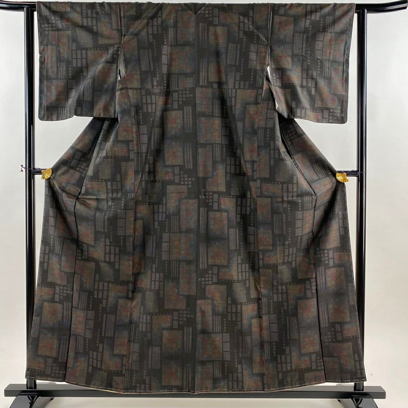 【大島紬】 黒系 墨色 名品 A 約150cm~約159cm 裄丈62cm以下 (S)size 袖丈49cm 9990-29990 美品 二万以下