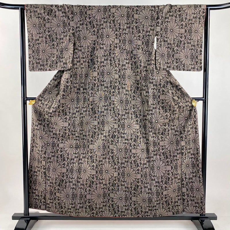 【大島紬】 茶系 焦茶色 秀品 C 約150cm~約159cm 裄丈63cm-64cm (M)size 袖丈48cm 4000-7980 二万以下