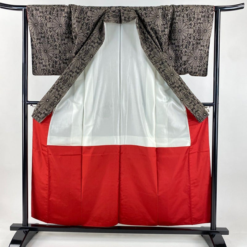 【着物ランク】秀品 【素材】正絹 【身丈】約158cm 【裄丈】約64cm 【袖丈】約48cm 【袖幅】約33.5cm 【前幅】約24cm 【後幅】約28cm 【サイズ】M 【着物仕立て】袷 【着用時期】10~5月 【状態ランク】ランクC 【着物着用シーン】気軽なパーティー、観劇、食事会、正月、気軽なお茶会、街着