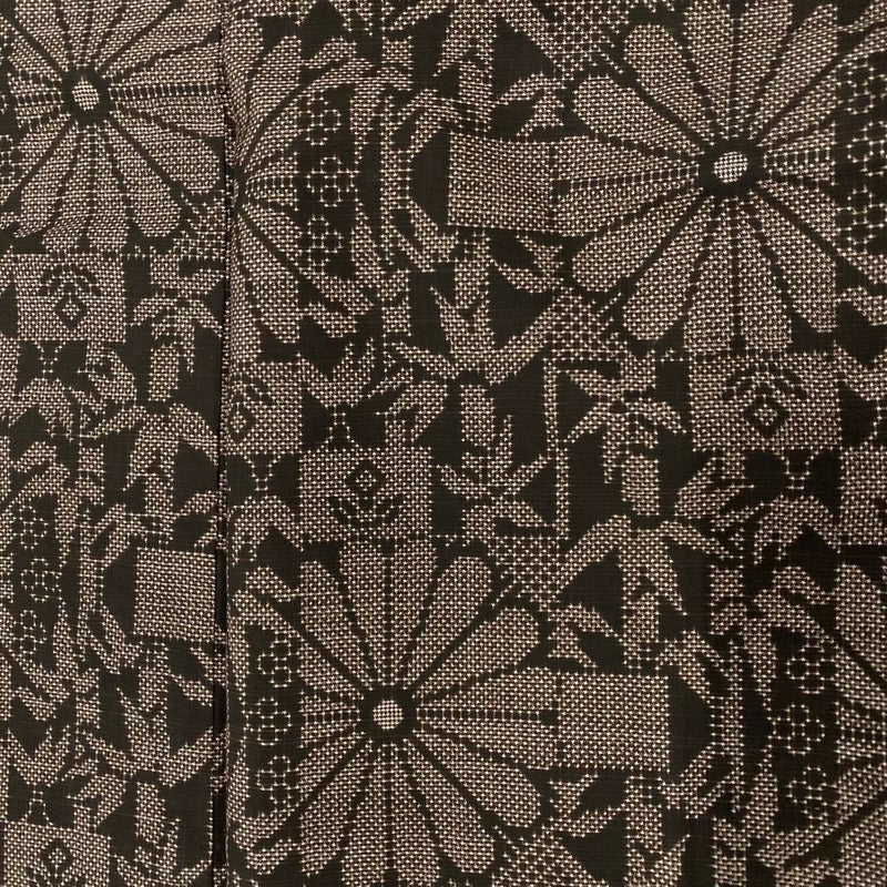 極上の着心地を誘い、洒落度溢れる絹音がお洒落心を満たす大島紬でございます。 紬特有の絹なりが感じられる一品となっております。 ※身丈・裄丈の縫込みの長さは測っておりません。 後身頃の所々と右袖前後と右胸と左後袖に小さなシミがございます。 胴裏所々に薄いシミ、胴裏所々に汗シミがございます。 ご購入の際はその点ご留意ください。 ※なお、厳しく商品の状態確認を行っておりますが、記載の汚れ以外にも見落とし箇所がある可能性がある旨ご了承いただけますと幸いです。 沢山の商品の中からご覧いただき誠にありがとうございます。