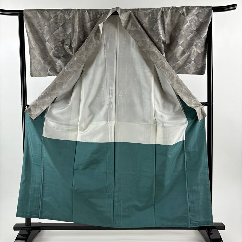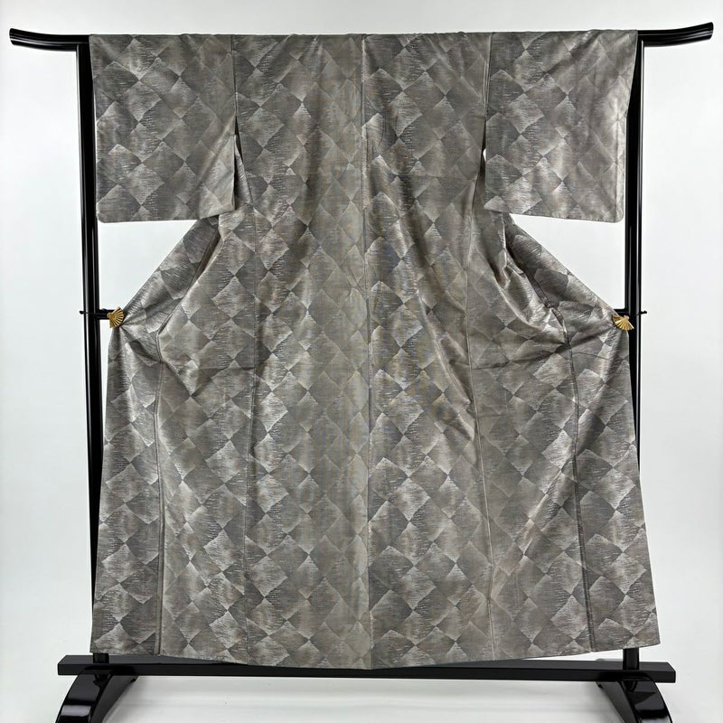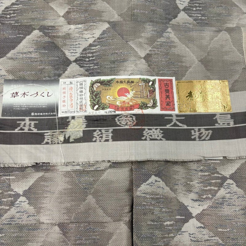 【大島紬】 灰色系 灰茶 逸品 A 約150cm~約159cm 裄丈63cm-64cm (M)size 袖丈46cm以下 30000- 美品 五万以上