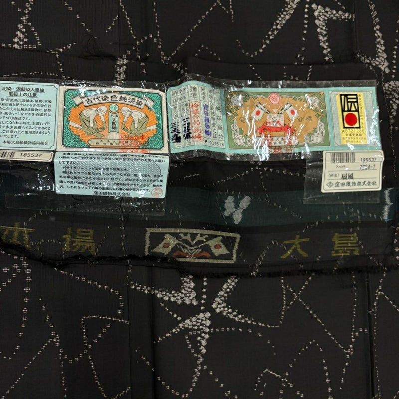 【大島紬】 黒系 黒 名品 C 約150cm~約159cm 裄丈62cm以下 (S)size 袖丈46cm以下 9990-29990 二万以下