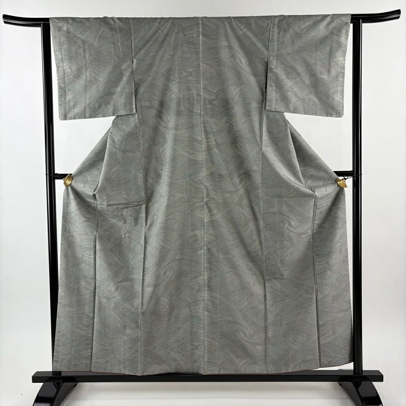 【大島紬】 灰色系 灰緑 名品 A 約150cm~約159cm 裄丈62cm以下 (S)size 袖丈46cm以下 9990-29990 美品 二万以下