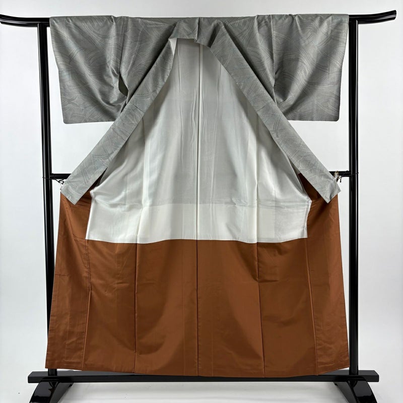 【着物ランク】名品 【素材】正絹 【身丈】約159.5cm 【裄丈】約62cm 【袖丈】約45cm 【袖幅】約32.5cm 【前幅】約23cm 【後幅】約29cm 【サイズ】S 【着物仕立て】袷 【着用時期】10~5月 【状態ランク】ランクA 【着物着用シーン】気軽なパーティー、観劇、食事会、正月、気軽なお茶会、街着