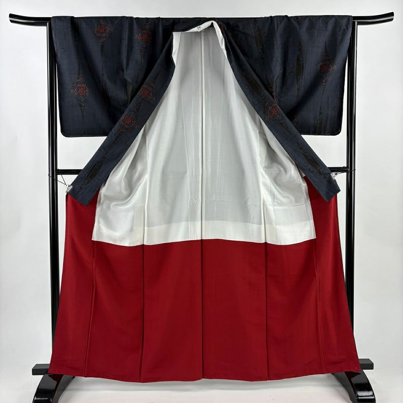 【着物ランク】秀品 【素材】正絹 【身丈】約164.5cm 【裄丈】約66cm 【袖丈】約52cm 【袖幅】約33.5cm 【前幅】約24.5cm 【後幅】約30cm 【サイズ】M 【着物仕立て】袷 【着用時期】10~5月 【状態ランク】ランクA 【着物着用シーン】気軽なパーティー、観劇、食事会、正月、気軽なお茶会、街着