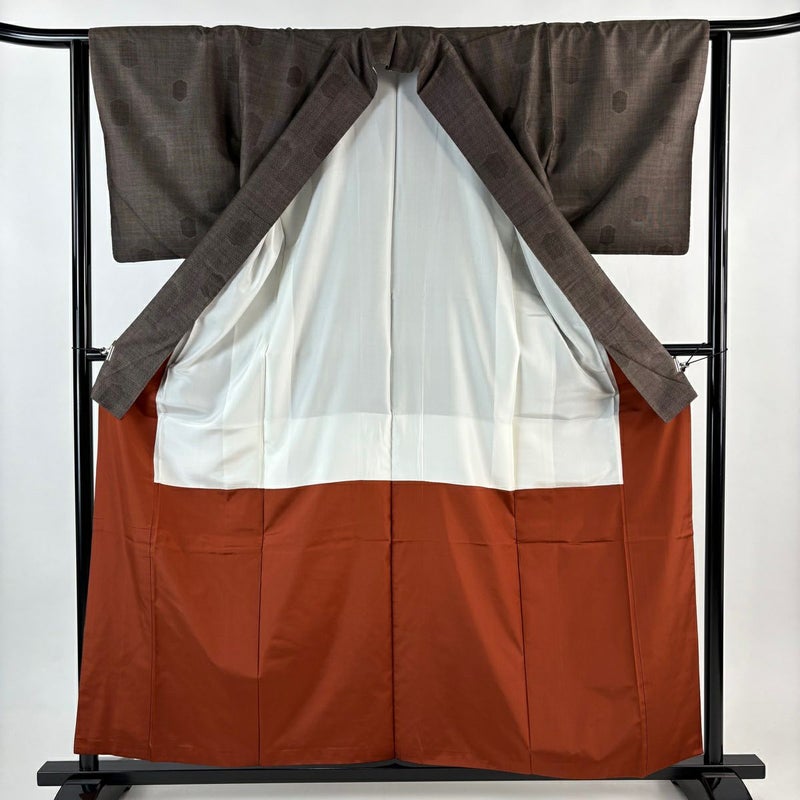 【大島紬】 茶系 焦茶色 秀品 C 約150cm~約159cm 裄丈63cm-64cm (S)size 袖丈48cm 4000-7980 二万以下