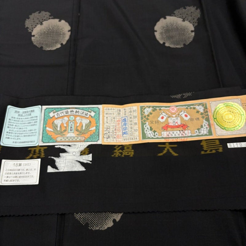 【大島紬】 黒系 黒 名品 B 約170cm~約179cm 裄丈67cm-68cm (L)size 袖丈50cm-60cm 9990-29990 二万以下