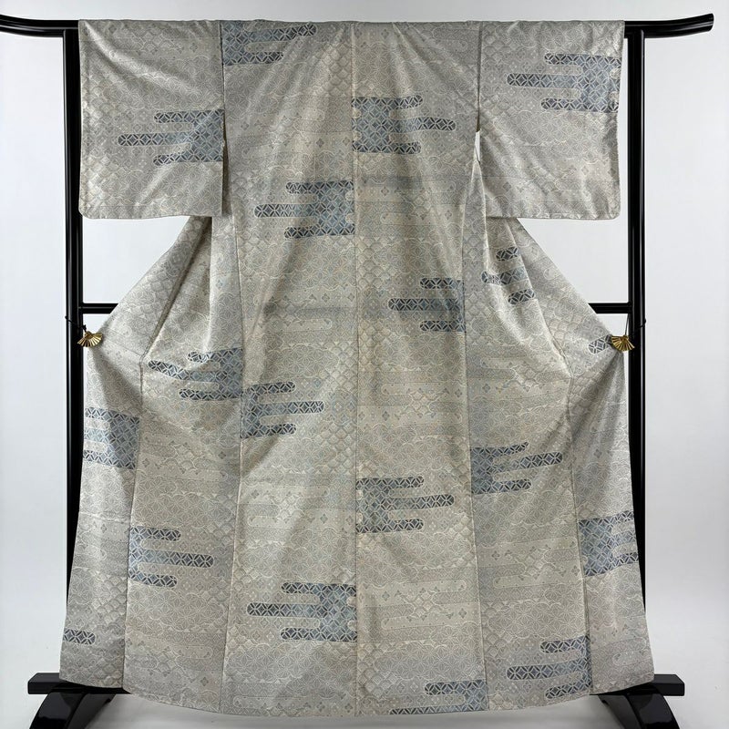 【大島紬】 灰色系 灰白 名品 C 約160cm~約169cm 裄丈63cm-64cm (S)size 袖丈49cm 9990-29990 二万以下