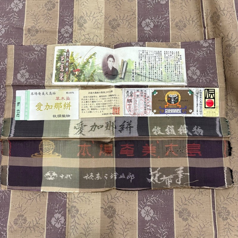 極上の着心地を誘い、洒落度溢れる絹音がお洒落心を満たす大島紬でございます。 紬特有の絹なりが感じられる一品となっております。 ※身丈・裄丈の縫込みの長さは測っておりません。 衿周りや両袖口中に汚れ、両胸にシワがございます。 裏地臀部付近と衿裏にシミがございます。 ご購入の際はその点ご留意ください。 ※なお、厳しく商品の状態確認を行っておりますが、記載の汚れ以外にも見落とし箇所がある可能性がある旨ご了承いただけますと幸いです。 沢山の商品の中からご覧いただき誠にありがとうございます。
