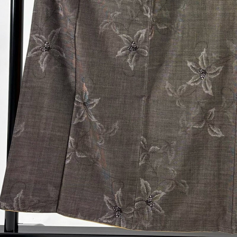 極上の着心地を誘い、洒落度溢れる絹音がお洒落心を満たす大島紬でございます。 紬特有の絹なりが感じられる一品となっております。 ※身丈・裄丈の縫込みの長さは測っておりません。 両衿先にシワがございます。 衿裏にホックシミがございます。 リユース品としては目立った染み傷なく、状態の良いお品でございます。 ※なお、厳しく商品の状態確認を行っておりますが、記載の汚れ以外にも見落とし箇所がある可能性がある旨ご了承いただけますと幸いです。 沢山の商品の中からご覧いただき誠にありがとうございます。