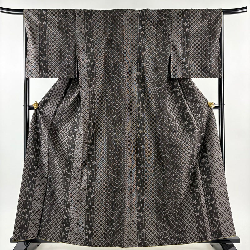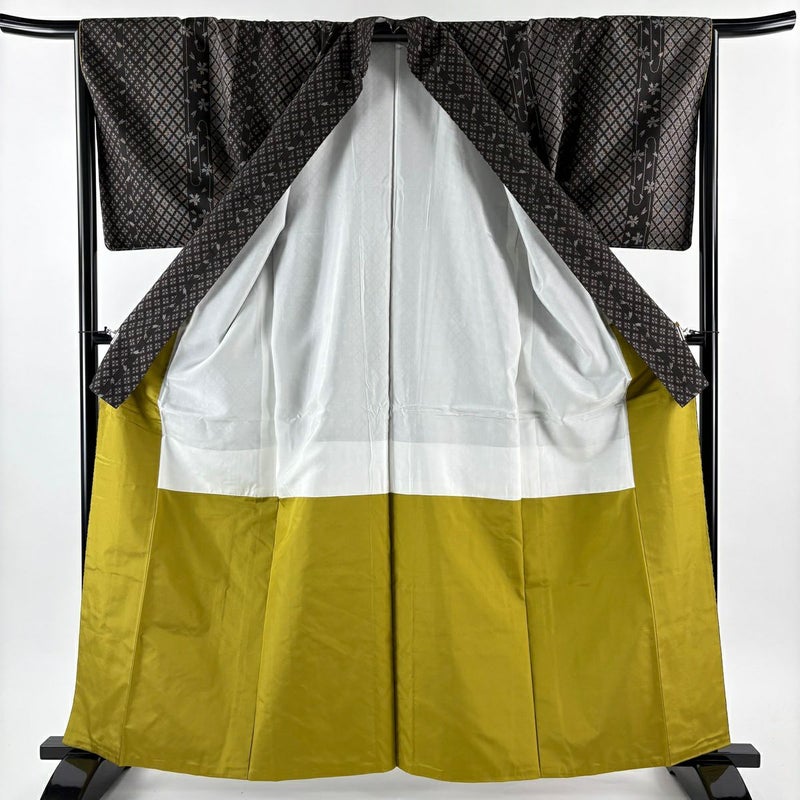 【大島紬】 茶系 焦茶色 名品 A 約160cm~約169cm 裄丈66cm (M)size 袖丈48cm 30000- 美品 五万以下
