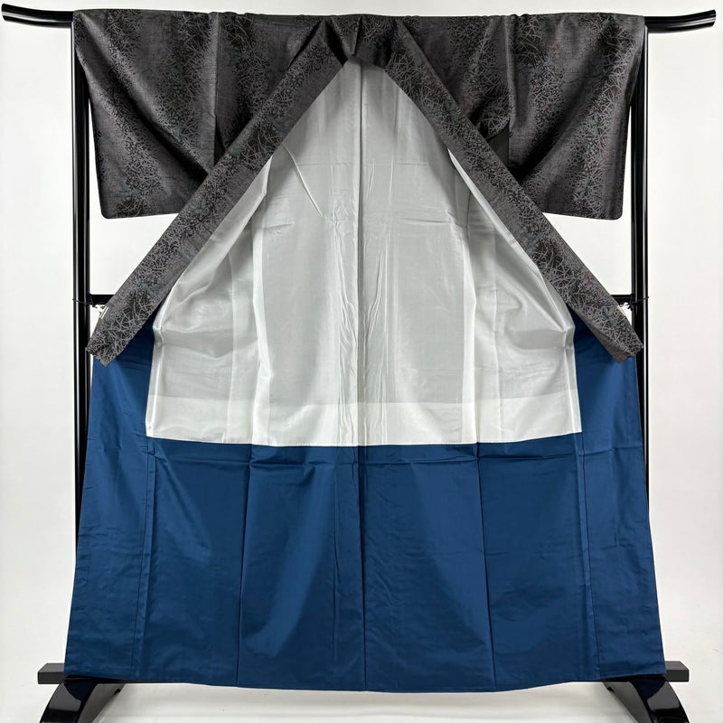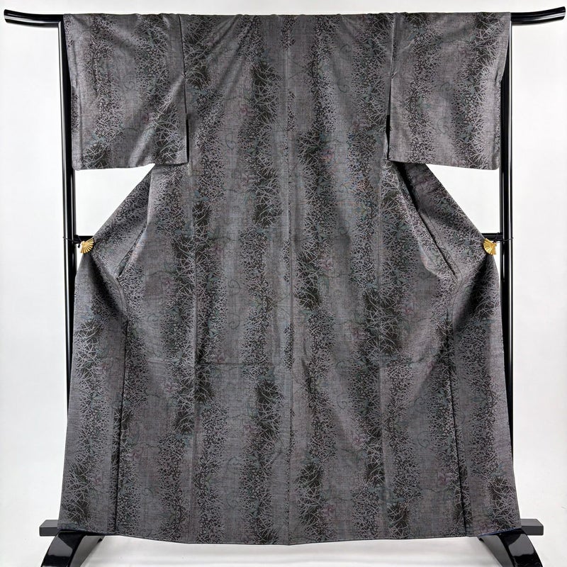 【大島紬】 黒系 墨色 名品 A 約160cm~約169cm 裄丈66cm (M)size 袖丈49cm 30000- 美品 五万以下