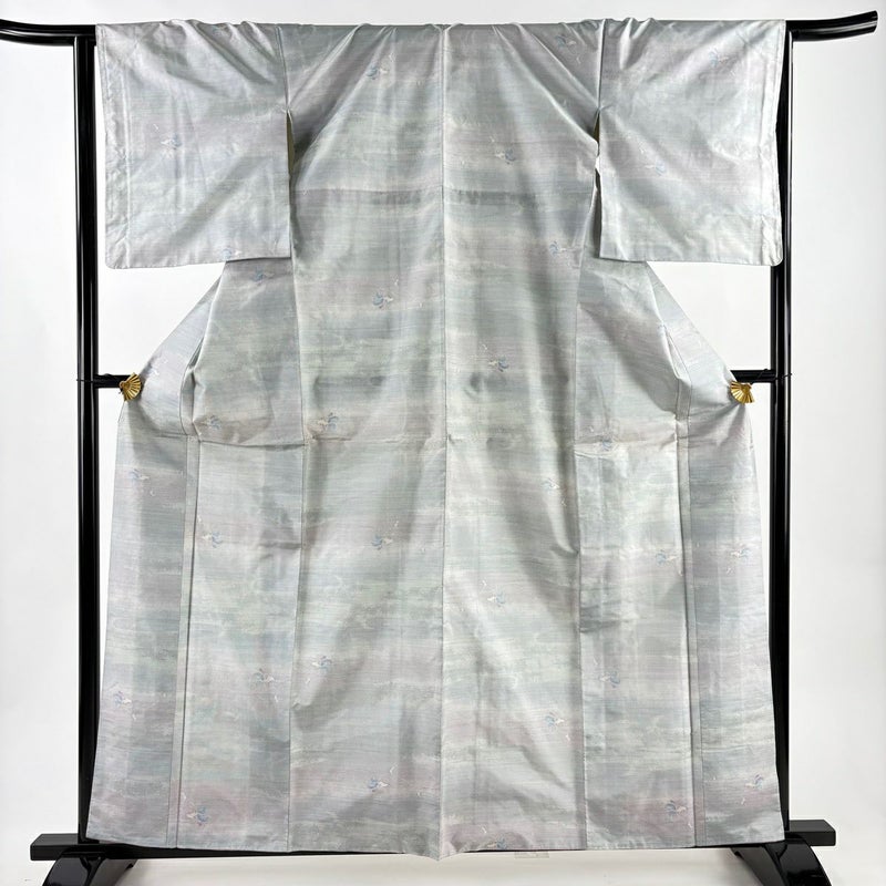 【大島紬】 灰色系 青灰色 名品 A 約160cm~約169cm 裄丈65cm (M)size 袖丈48cm 9990-29990 美品 二万以下
