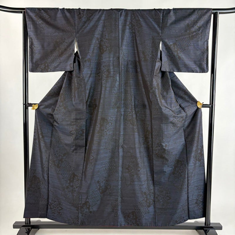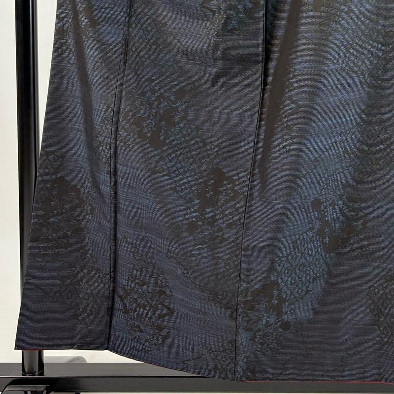 【着物ランク】優品 【素材】正絹 【身丈】約157.5cm 【裄丈】約65cm 【袖丈】約46cm 【袖幅】約33cm 【前幅】約26cm 【後幅】約29.5cm 【サイズ】M 【着物仕立て】袷 【着用時期】10~5月 【状態ランク】ランクA 【着物着用シーン】気軽なパーティー、観劇、食事会、正月、気軽なお茶会、街着