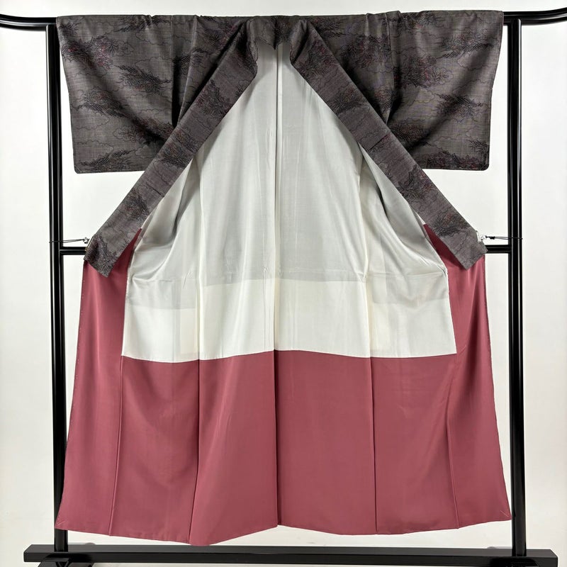 【着物ランク】秀品 【素材】正絹 【身丈】約152cm 【裄丈】約63.5cm 【袖丈】約45cm 【袖幅】約33cm 【前幅】約24cm 【後幅】約29.5cm 【サイズ】S 【着物仕立て】袷 【着用時期】10~5月 【状態ランク】ランクA 【着物着用シーン】気軽なパーティー、観劇、食事会、正月、気軽なお茶会、街着