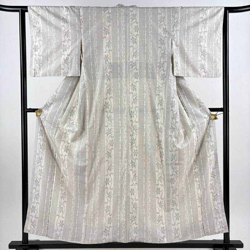 【着物ランク】逸品 【素材】正絹 【身丈】約156cm 【裄丈】約62.5cm 【袖丈】約47.5cm 【袖幅】約32.5cm 【前幅】約24cm 【後幅】約28.5cm 【サイズ】S 【着物仕立て】袷 【着用時期】10~5月 【状態ランク】ランクC 【着物着用シーン】気軽なパーティー、観劇、食事会、正月、気軽なお茶会、街着
