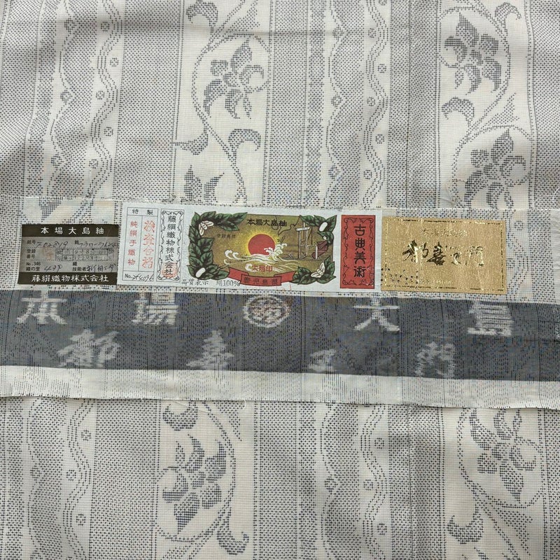 【大島紬】 白系 クリーム 逸品 C 約150cm~約159cm 裄丈62cm以下 (S)size 袖丈47cm 30000- 五万以上