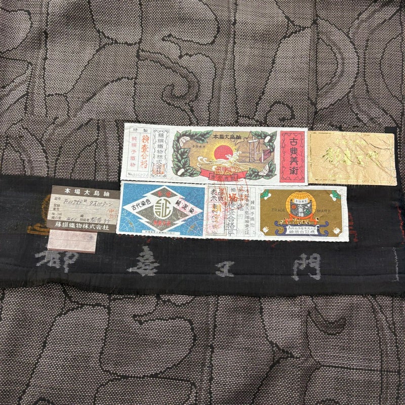 【大島紬】 茶系 焦茶色 逸品 A 約150cm~約159cm 裄丈65cm (M)size 袖丈49cm 30000- 美品 五万以上