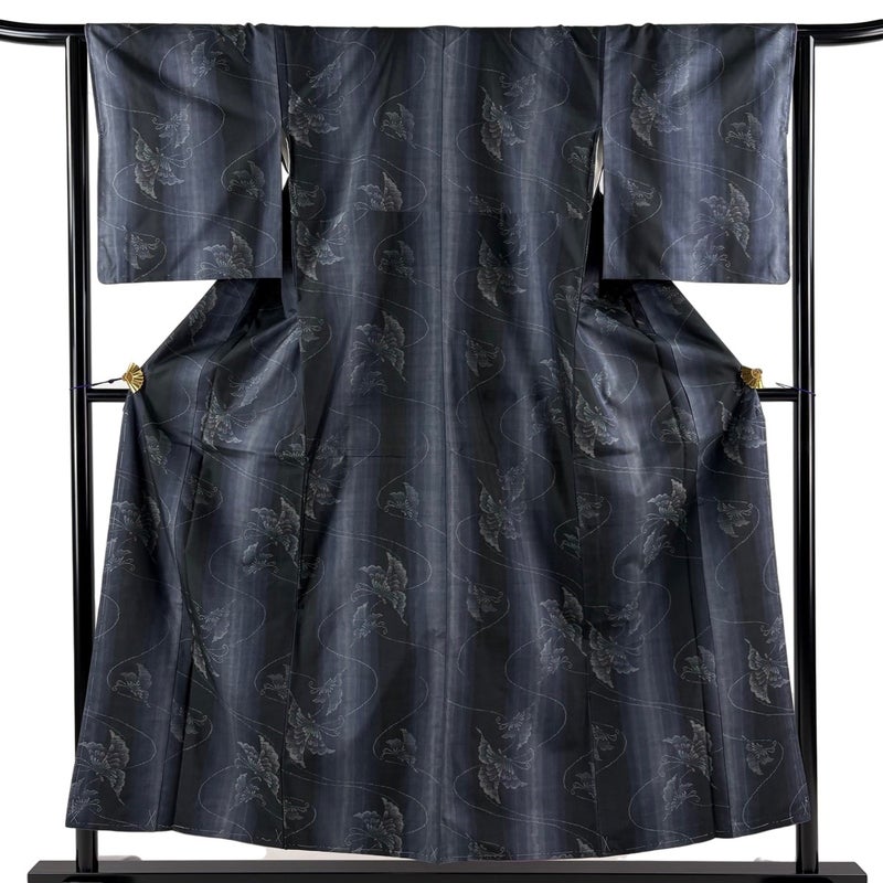 【着物ランク】秀品 【素材】正絹 【身丈】約154.5cm 【裄丈】約64cm 【袖丈】約48cm 【袖幅】約34cm 【前幅】約23cm 【後幅】約28cm 【サイズ】M 【着物仕立て】袷 【着用時期】10~5月 【状態ランク】ランクA 【着物着用シーン】気軽なパーティー、観劇、食事会、正月、気軽なお茶会、街着