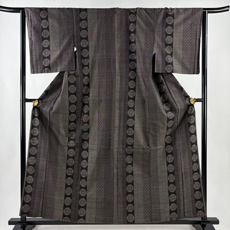 【大島紬】 茶系 焦茶色 秀品 A 約160cm~約169cm 裄丈63cm-64cm (M)size 袖丈49cm 7990-9980 美品 二万以下