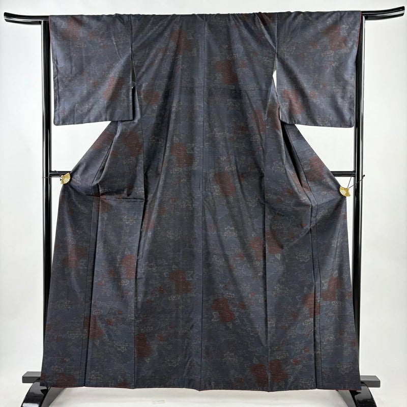 【着物ランク】秀品 【素材】正絹 【身丈】約163.5cm 【裄丈】約64cm 【袖丈】約49cm 【袖幅】約34cm 【前幅】約24cm 【後幅】約29cm 【サイズ】M 【着物仕立て】袷 【着用時期】10~5月 【状態ランク】ランクB 【着物着用シーン】気軽なパーティー、観劇、食事会、正月、気軽なお茶会、街着