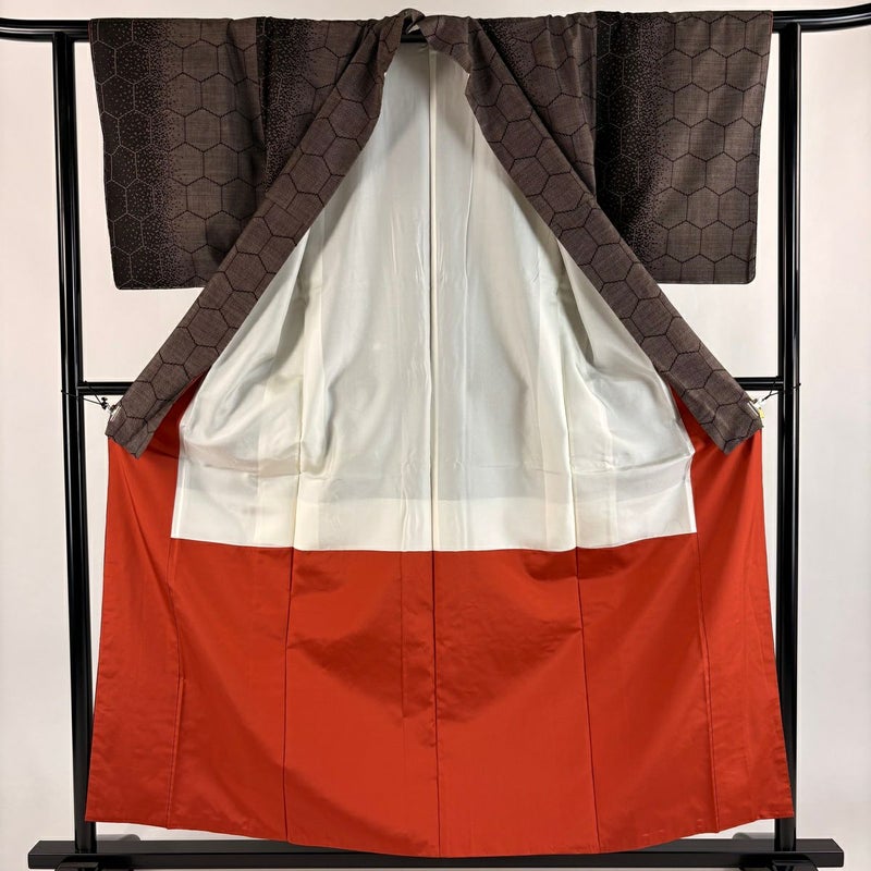 【大島紬】 茶系 焦茶色 秀品 A 約150cm~約159cm 裄丈62cm以下 (S)size 袖丈49cm 7990-9980 美品 二万以下
