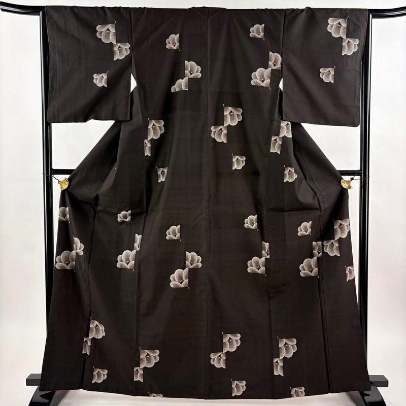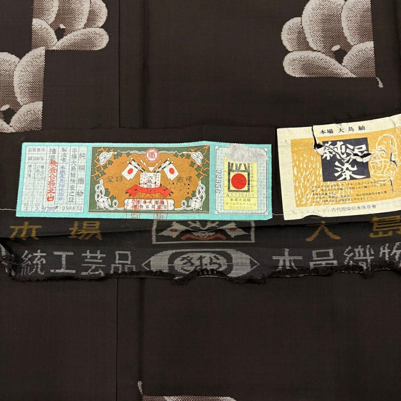 【大島紬】 黒系 墨色 秀品 A 約160cm~約169cm 裄丈65cm (M)size 袖丈48cm 7990-9980 美品 二万以下