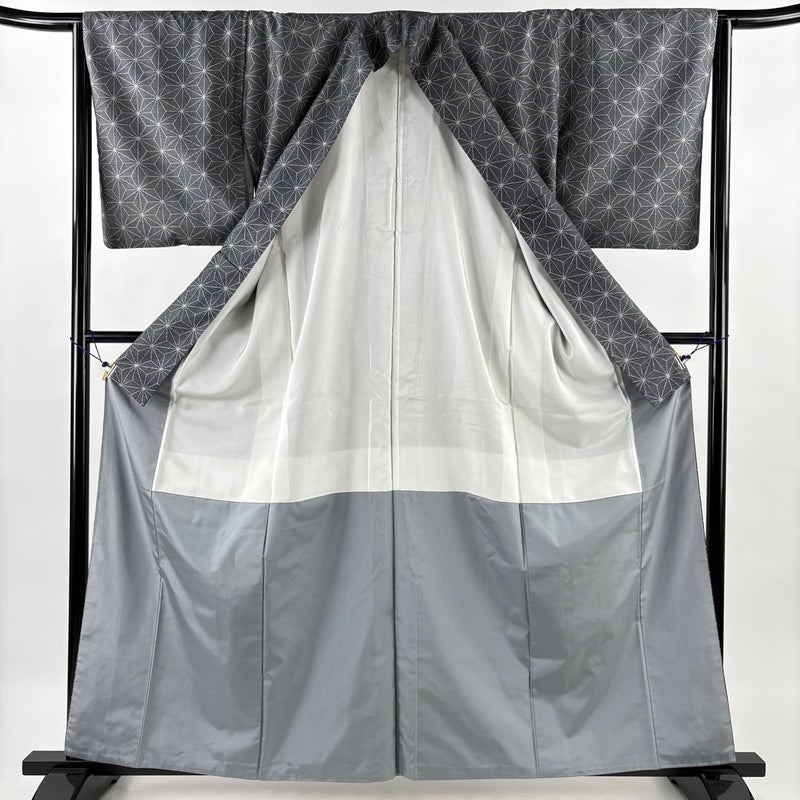 【大島紬】 灰色系 黒灰 名品 B 約160cm~約169cm 裄丈63cm-64cm (M)size 袖丈49cm 9990-29990 二万以下
