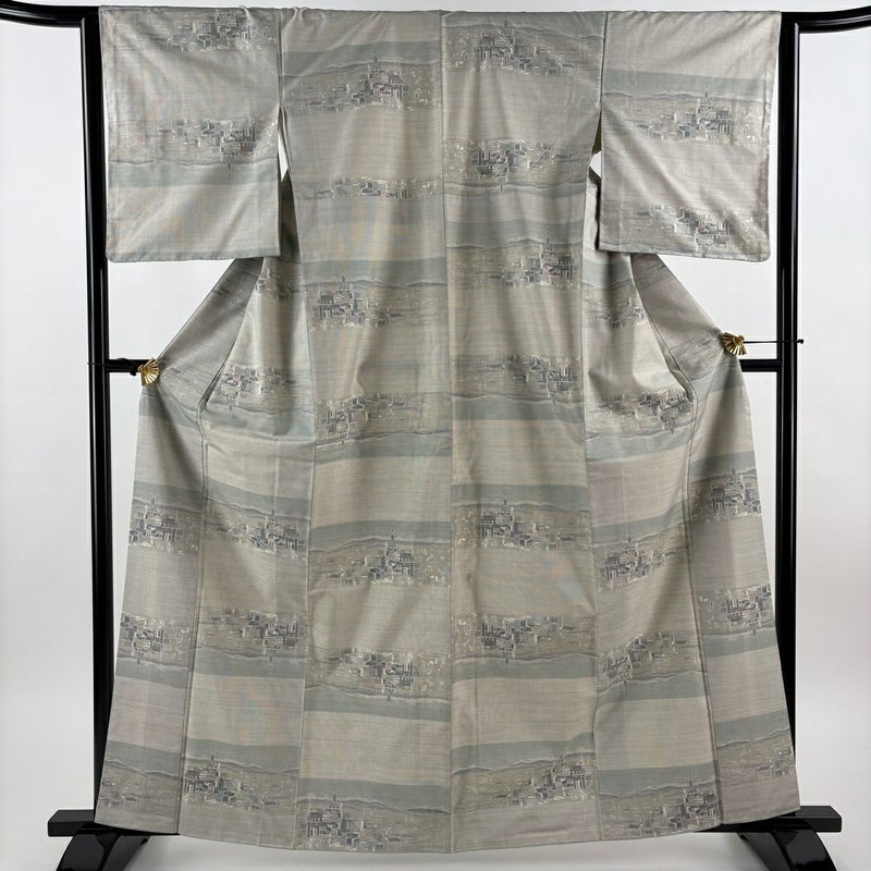 【大島紬】 灰色系 灰緑 名品 A 約160cm~約169cm 裄丈62cm以下 (S)size 袖丈49cm 9990-29990 美品 二万以下