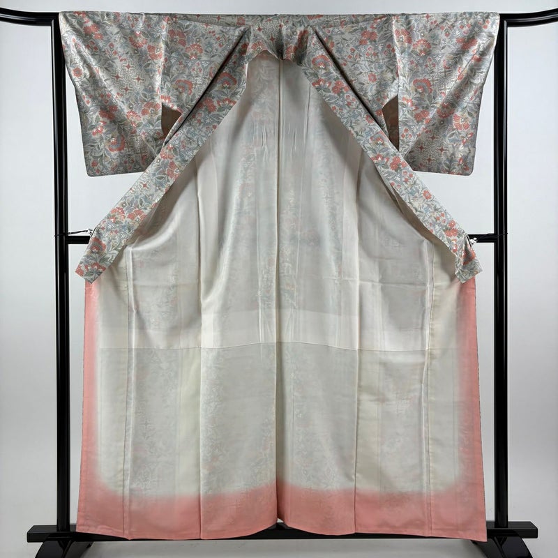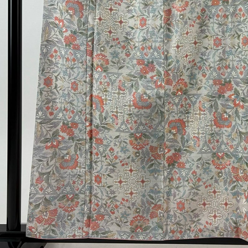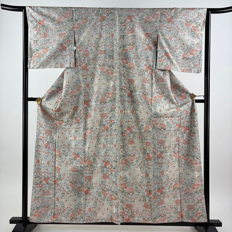 【着物ランク】秀品 【素材】正絹 【身丈】約160cm 【裄丈】約64.5cm 【袖丈】約48.5cm 【袖幅】約32.5cm 【前幅】約22.5cm 【後幅】約28.5cm 【サイズ】M 【着物仕立て】袷 【着用時期】10~5月 【状態ランク】ランクB 【着物着用シーン】気軽なパーティー、観劇、食事会、正月、気軽なお茶会、街着