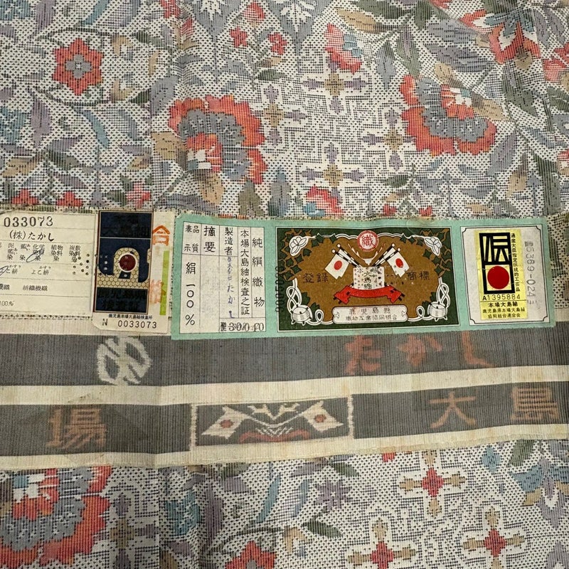 【大島紬】 灰色系 灰白 秀品 B 約160cm~約169cm 裄丈63cm-64cm (M)size 袖丈48cm 4000-7980 二万以下