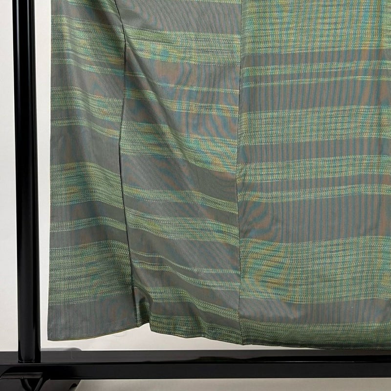 【大島紬】 灰色系 灰緑 秀品 A 約150cm~約159cm 裄丈63cm-64cm (S)size 袖丈49cm 7990-9980 美品 二万以下