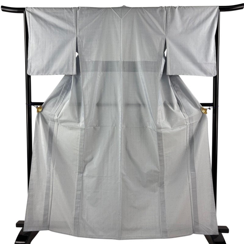 【着物ランク】秀品 【素材】正絹 【身丈】約165cm 【裄丈】約66cm 【袖丈】約48.5cm 【袖幅】約34.5cm 【前幅】約24cm 【後幅】約30cm 【サイズ】M 【着物仕立て】単衣 【着用時期】6/9月 【状態ランク】ランクB 【着物着用シーン】気軽なパーティー、観劇、食事会、正月、気軽なお茶会、街着