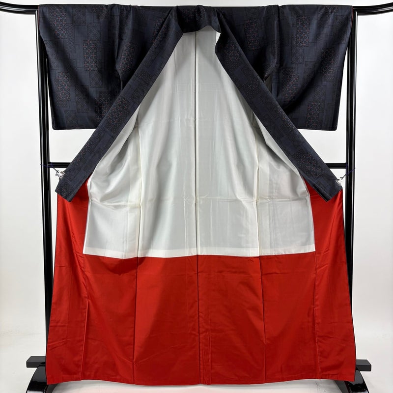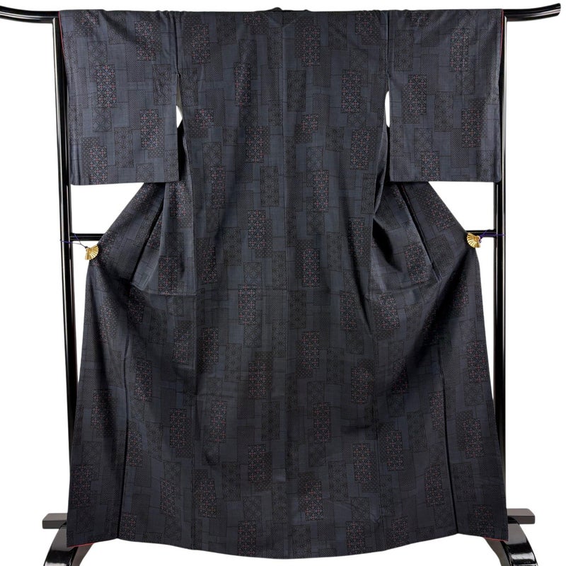 【着物ランク】秀品 【素材】正絹 【身丈】約168cm 【裄丈】約65.5cm 【袖丈】約52cm 【袖幅】約33.5cm 【前幅】約24cm 【後幅】約29.5cm 【サイズ】M 【着物仕立て】袷 【着用時期】10~5月 【状態ランク】ランクA 【着物着用シーン】気軽なパーティー、観劇、食事会、正月、気軽なお茶会、街着