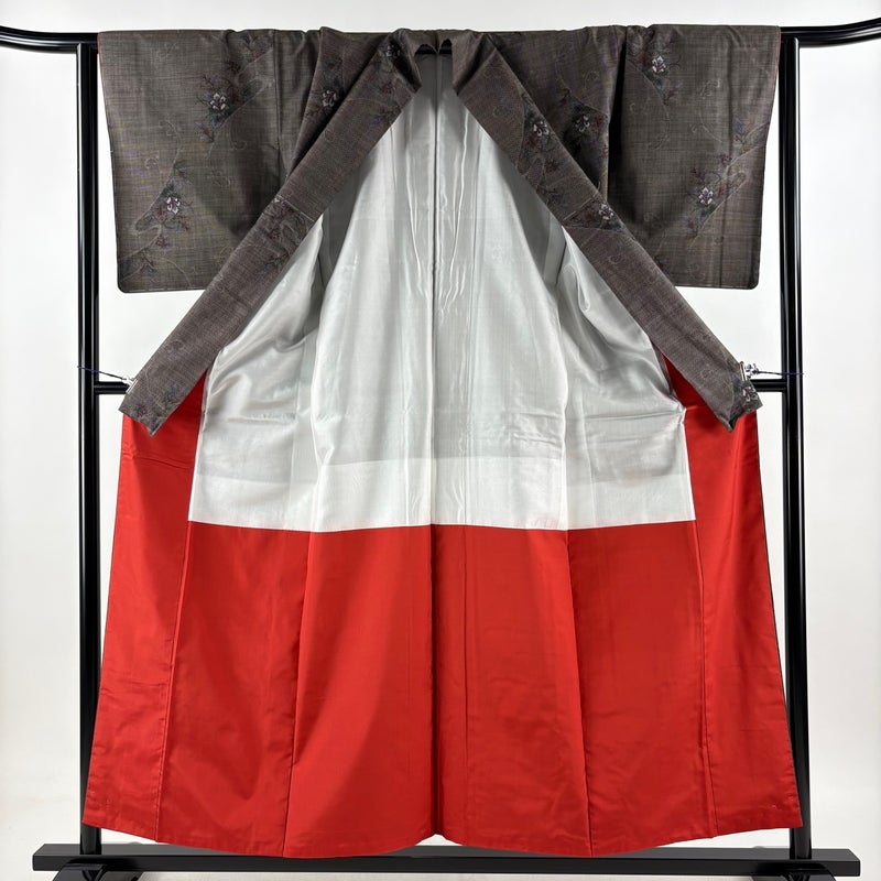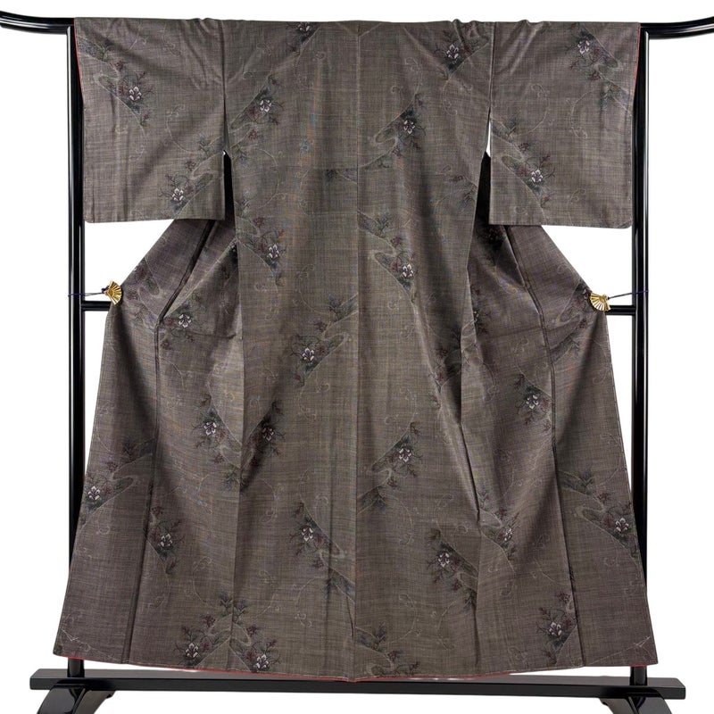 【着物ランク】秀品 【素材】正絹 【身丈】約156cm 【裄丈】約65.5cm 【袖丈】約49cm 【袖幅】約33.5cm 【前幅】約24cm 【後幅】約30.5cm 【サイズ】M 【着物仕立て】袷 【着用時期】10~5月 【状態ランク】ランクA 【着物着用シーン】気軽なパーティー、観劇、食事会、正月、気軽なお茶会、街着
