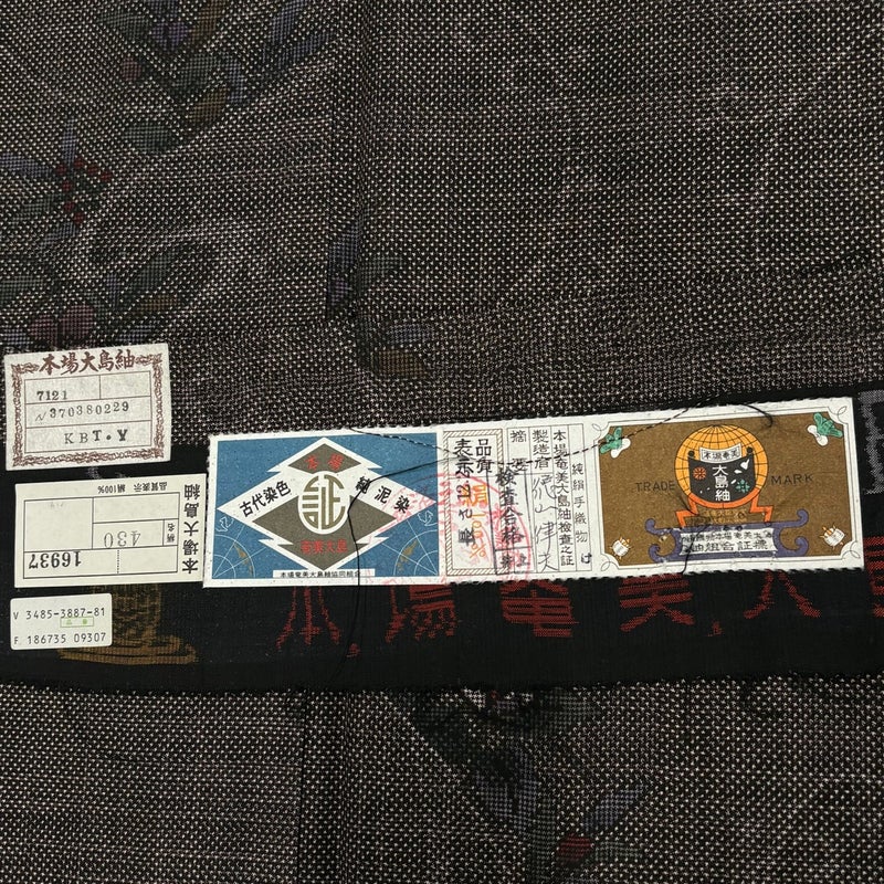 【大島紬】 茶系 焦茶色 秀品 A 約150cm~約159cm 裄丈65cm (M)size 袖丈49cm 7990-9980 美品 二万以下