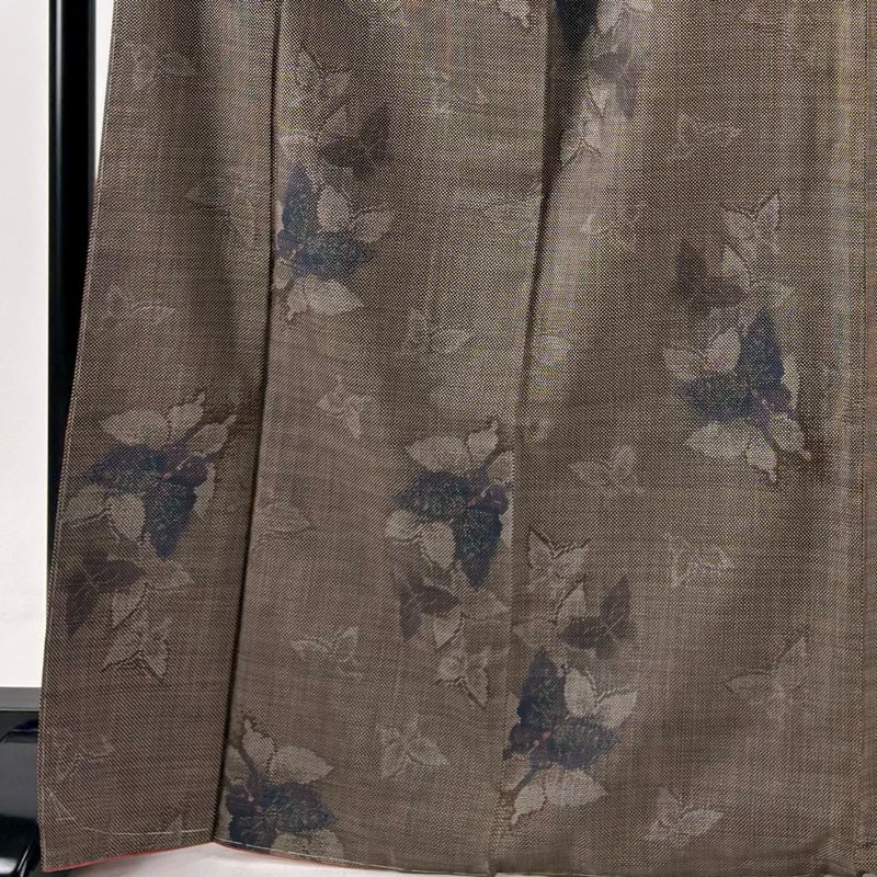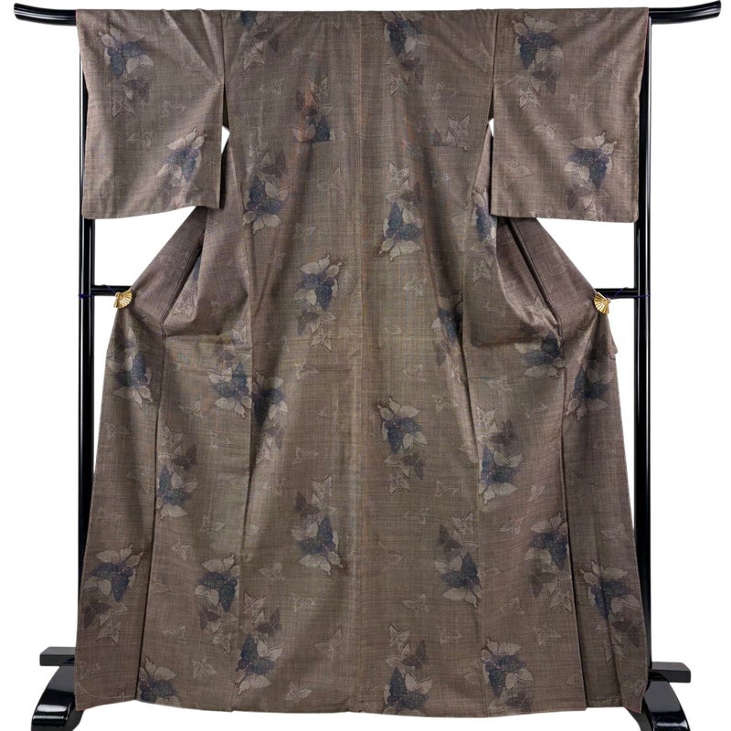 【着物ランク】秀品 【素材】正絹 【身丈】約169cm 【裄丈】約67cm 【袖丈】約53cm 【袖幅】約34cm 【前幅】約23.5cm 【後幅】約29.5cm 【サイズ】M 【着物仕立て】袷 【着用時期】10~5月 【状態ランク】ランクB 【着物着用シーン】気軽なパーティー、観劇、食事会、正月、気軽なお茶会、街着