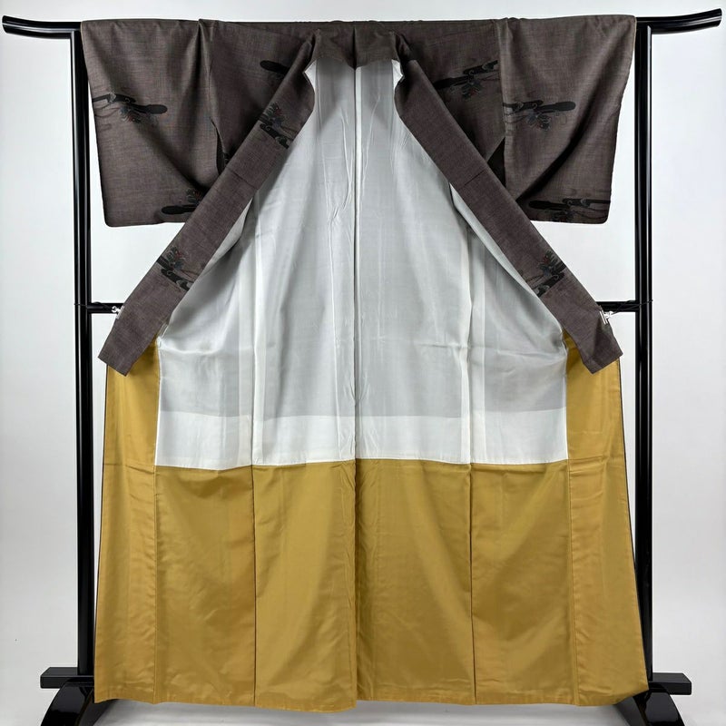 【着物ランク】秀品 【素材】正絹 【身丈】約165cm 【裄丈】約63.5cm 【袖丈】約49cm 【袖幅】約33.5cm 【前幅】約24cm 【後幅】約29.5cm 【サイズ】S 【着物仕立て】袷 【着用時期】10~5月 【状態ランク】ランクA 【着物着用シーン】気軽なパーティー、観劇、食事会、正月、気軽なお茶会、街着