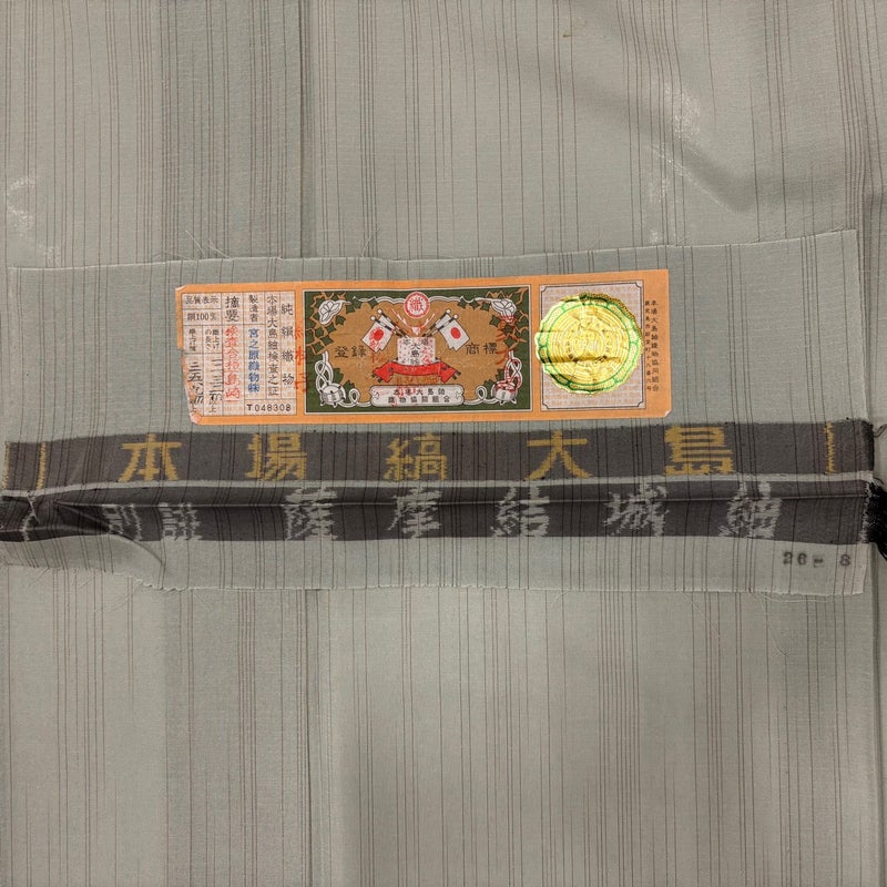 【大島紬】 緑系 薄緑 秀品 B 約160cm~約169cm 裄丈65cm (M)size 袖丈49cm 9990-29990 二万以下