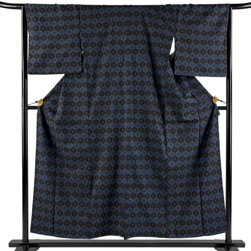 【着物ランク】秀品 【素材】正絹 【身丈】約155cm 【裄丈】約65cm 【袖丈】約49cm 【袖幅】約33cm 【前幅】約24cm 【後幅】約29.5cm 【サイズ】M 【着物仕立て】袷 【着用時期】10~5月 【状態ランク】ランクC 【着物着用シーン】気軽なパーティー、観劇、食事会、正月、気軽なお茶会、街着