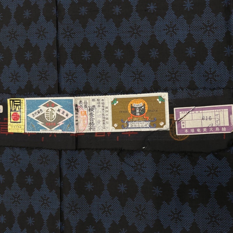 【大島紬】 青系 紺色 秀品 C 約150cm~約159cm 裄丈65cm (M)size 袖丈49cm 4000-7980 二万以下
