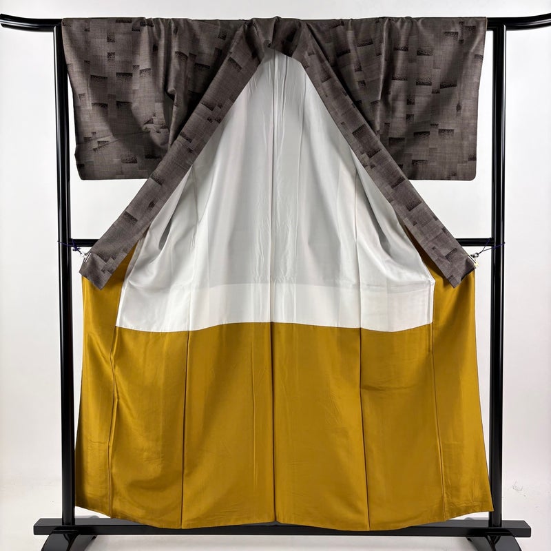 【着物ランク】名品 【素材】正絹 【身丈】約157.5cm 【裄丈】約62.5cm 【袖丈】約49cm 【袖幅】約32.5cm 【前幅】約23cm 【後幅】約30cm 【サイズ】S 【着物仕立て】袷 【着用時期】10~5月 【状態ランク】ランクB 【着物着用シーン】気軽なパーティー、観劇、食事会、正月、気軽なお茶会、街着