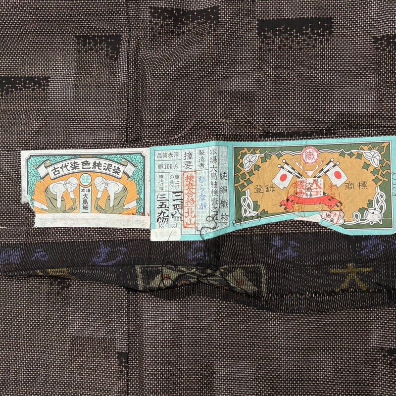 【大島紬】 茶系 焦茶色 名品 B 約150cm~約159cm 裄丈62cm以下 (S)size 袖丈49cm 9990-29990 二万以下
